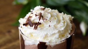 Decora con la crema batida y el chocolate rallado. ¡Disfruta!
