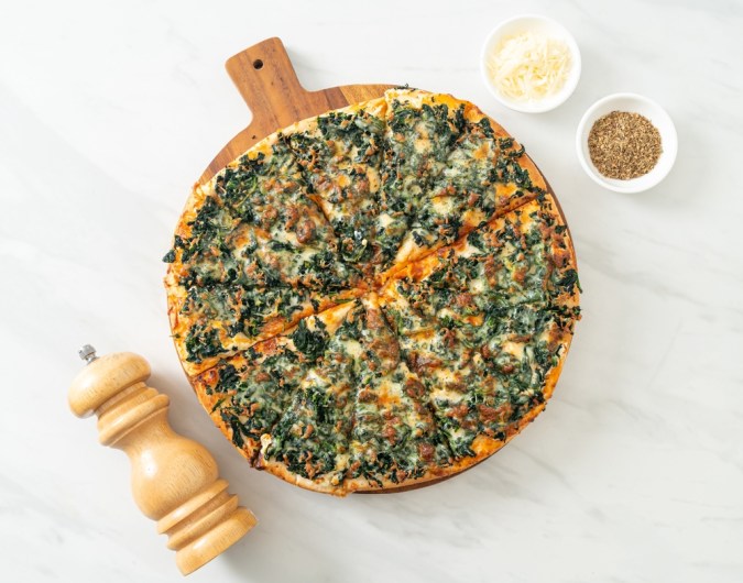 Si te gustan las espinacas, está es una pizza que tienes que hacer como opción deliciosa y saludable de una cena, por ejemplo. Será amor a primer mordisco.