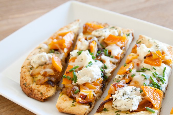El puré de calabaza le da un toque suave y cremoso a la pizza, el cual se complementa muy bien con el dulzor y la textura de la cebolla caramelizada.
