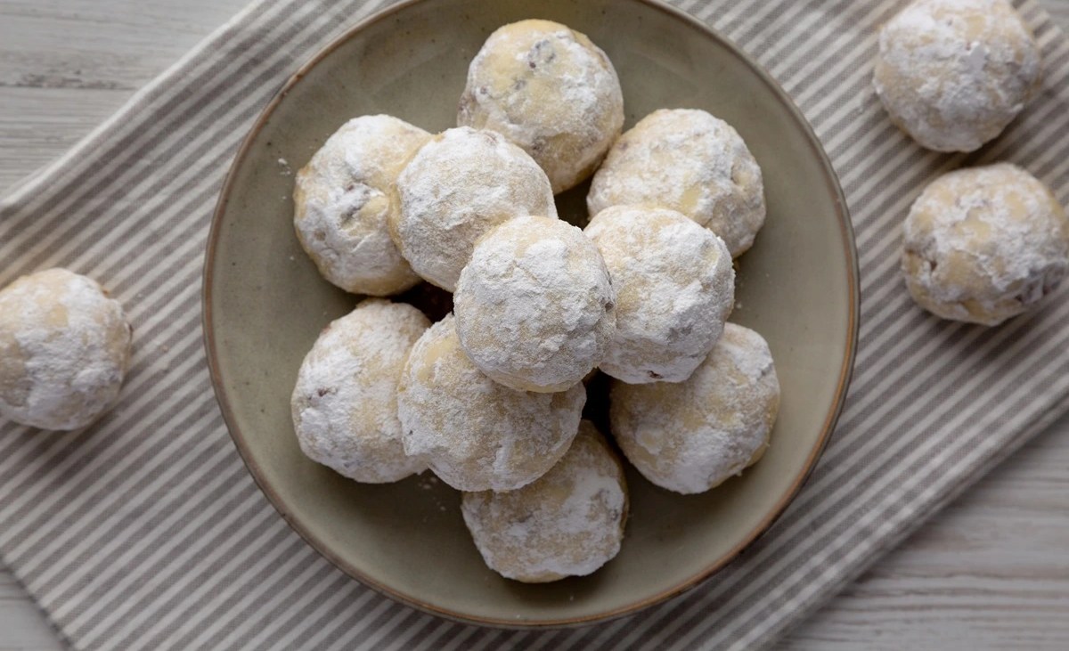 Se trata de unas galletas bien crujientes, con sabor a nuez y vainilla, es decir, una especie de polvorones de nuez pequeños, redondos y cubiertos de azúcar glass. ¡Súper adictivas!