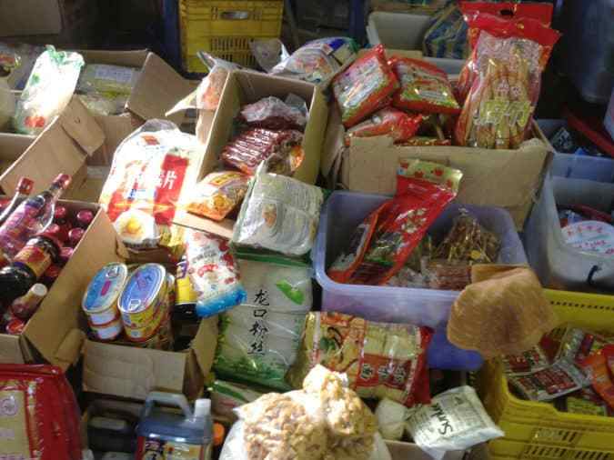 Hay una tienda, como una bodega donde puedes conseguir cualquier cantidad de productos, salsas, tallarines, latas que no se entiende nada, sopas, woks. Pero también hay puestos en el área común del mercado donde puedes comprar muchas de esas cosas.