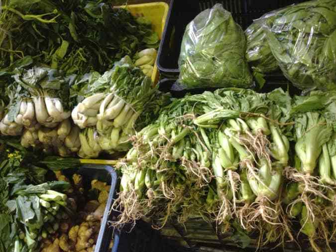 Puedes conseguir variedad de vegetales típicos de la gastronomía asiática: flor de ajo, cebollín chino, brotes de frijol, brotes de soja, rábanos, vainitas chinas, espinacas, jengibre, bok choi, etc.