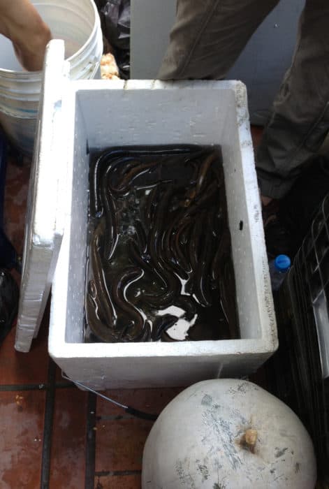 Y por último, si te gusta la comida muy muy fresca… puedes comprar anguilas vivas!