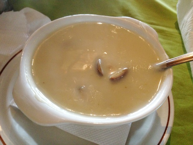 Otra de las cosas simpáticas que comí fue un risotto mar y monte (monte=champiñones) en la Trattoria La Romana. Buen plato, con sabores súper concentrados, quizás un poquito excesivo el gusto de las conchas de mar, pero nada que resultara molesto. Lo único que sí fue molesto es que se dieron postín en traer la comida. Ah, y que justo a esa hora se les ocurrió reparar la alarma de emergencia que no funcionaba, y claro, para repararla tenían que hacerla sonar 😀