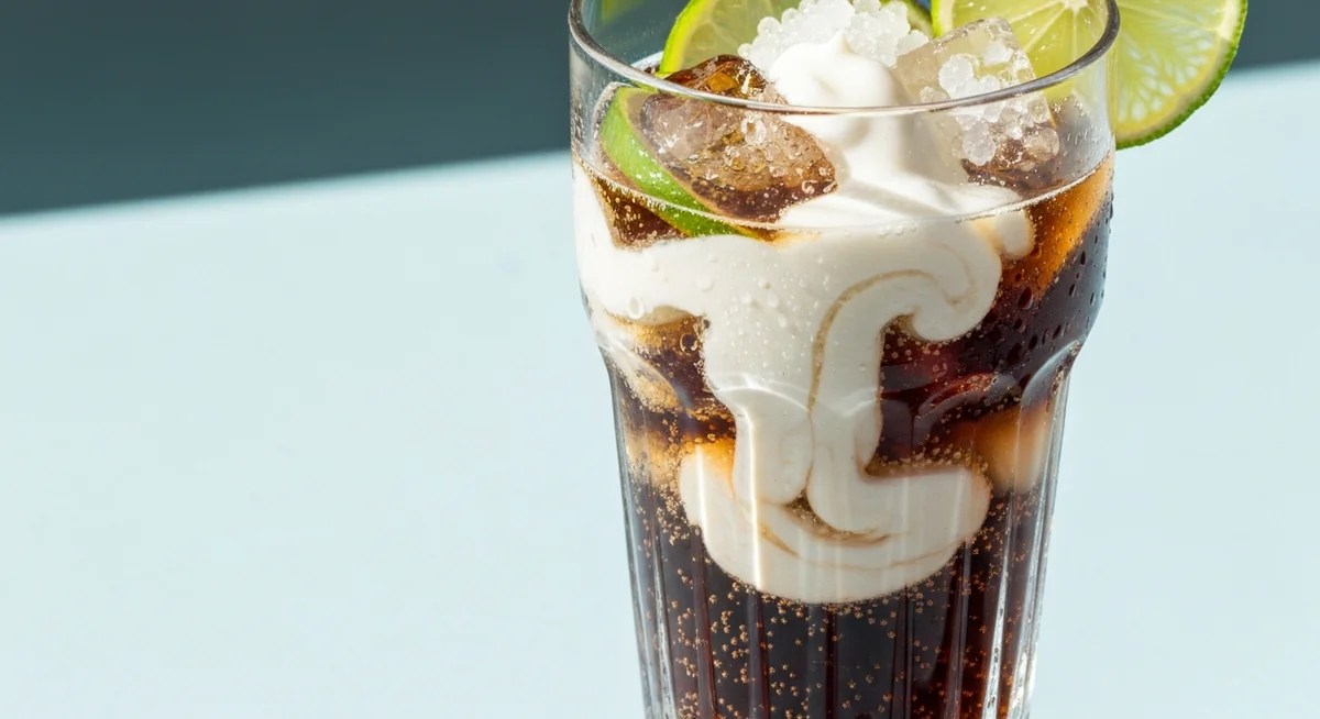 El secreto es usar una base láctea con alto contenido graso, como el Half & Half o la nata, ya que la grasa protege a las proteínas de la coagulación inmediata. Además, verter la crema al final sobre el refresco ya enfriado por el hielo reduce drásticamente la velocidad de la reacción.