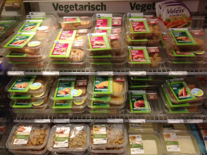 Hay una sección para los vegetarianos, donde puedes comprar tus carnes de soya, y diversas proteínas, listas para cocinar.