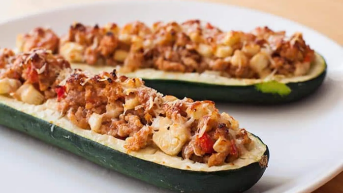 Almuerzo: Si estas interesado en conocer recetas para adelgazar, estos calabacines rellenos de carne son una opción muy rica y se prepara en pocos minutos, además tiene todo: verduras, proteínas magras y mucho sabor.