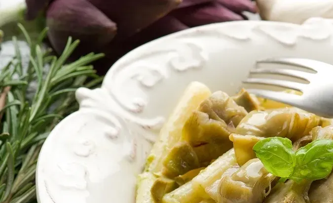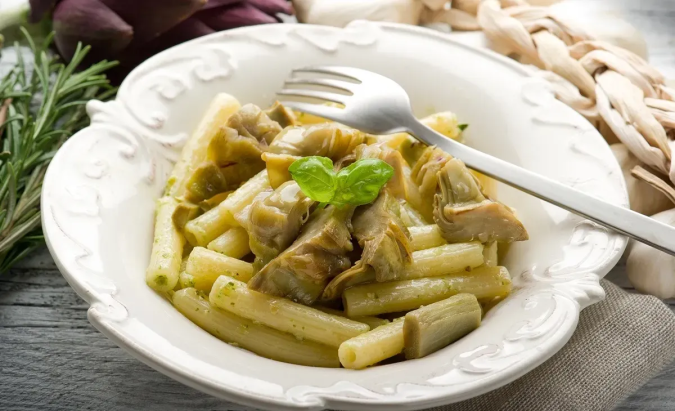 Almuerzo: Iniciamos la semana con un delicioso y cremoso rigatoni con alcachofas, una pasta deliciosa, fácil de preparar y rápida, que tiene alcachofas salteadas y vino blanco.