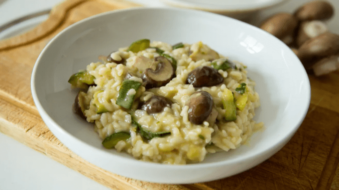 Cena: Con un poco más de 300 calorías, este risotto de zucchini y hongos es bien ligero para una cena, delicioso y con ingredientes sencillos.