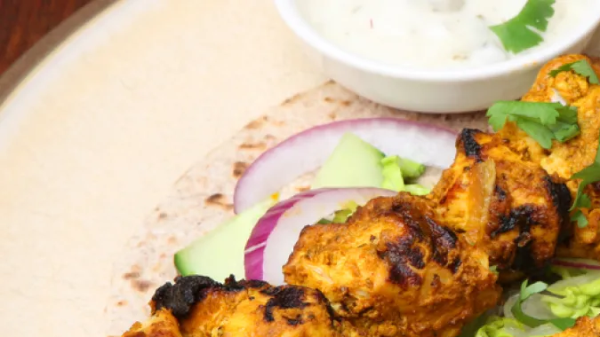 Almuerzo: Iniciemos la semana con brochetas de pollo al curry, una receta cargada de mucho sabor especiado y fácil de hacer.