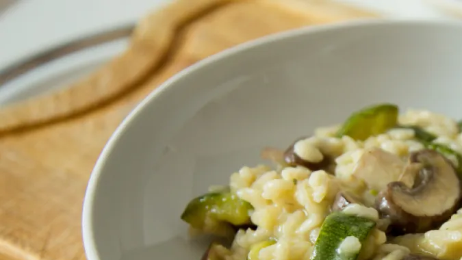 Cena: Con un poco más de 300 calorías, este risotto de zucchini y hongos es bien ligero para una cena, delicioso y con ingredientes sencillos.