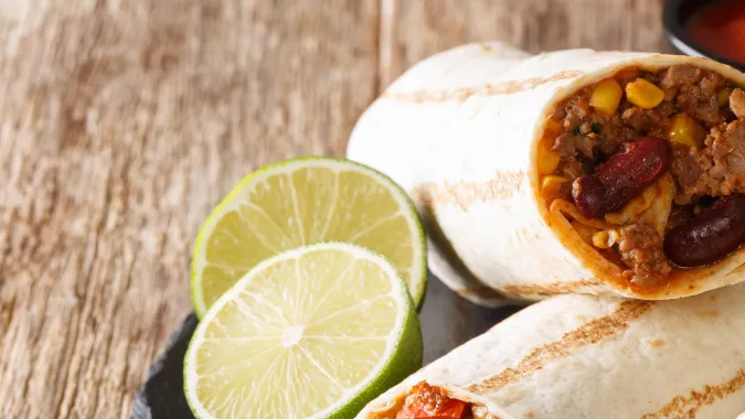 Almuerzo: Una comida completa, deliciosa y rápida es este burrito de carne molida, bien jugosa y completa porque tiene granos, vegetales y proteína.