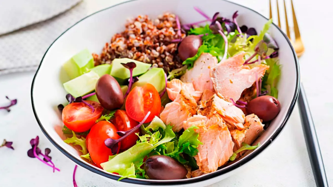 Almuerzo: Comienza tu semana con una ensalada de quinoa con salmón, una receta saludable que podrás preparar en solo 20 minutos.