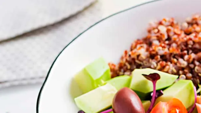 Además de la quinoa, necesitarás salmón cocido, es decir, compra un filete del pescado y lo cocinas a la plancha para luego picarlo en trozos y ponerlo en el bol. También utilizaremos aguacate, aceitunas, lechuga y jugo de limón.