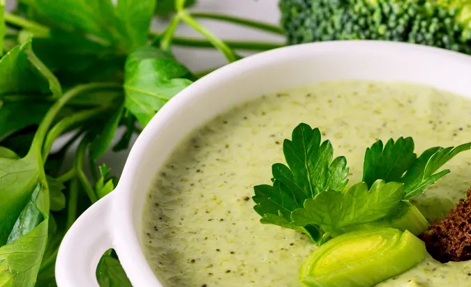 Cena: Una receta baja en calorías y con muchas propiedades es la sopa de brócoli y puerros, se sirve caliente y es bien cremosa para comerla sola o acompañada de pollo o pavo desmenuzado.