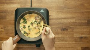 - Un detalle importante: bate muy bien los huevos hasta que queden espumosos. Así obtendrás una omelette más esponjosa y consistente.