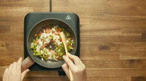 Calienta una sartén con un poco de aceite de oliva y sofríe las verduras por 4 minutos.