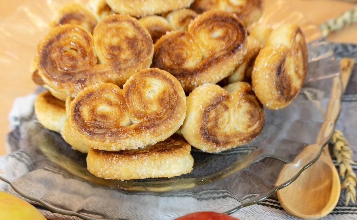 La palmera de manzana es un dulce de hojaldre crujiente relleno de manzana caramelizada con canela y miel.