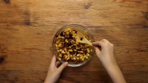 Añade las nueces troceadas y mezcla muy bien hasta que quede súper integrado.