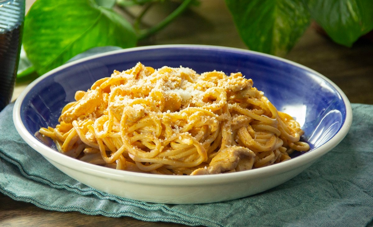 Los espaguetis con pollo y crema al chipotle son una propuesta sencilla pero cargada de sabor, no te arrepentirás de elegir este plato