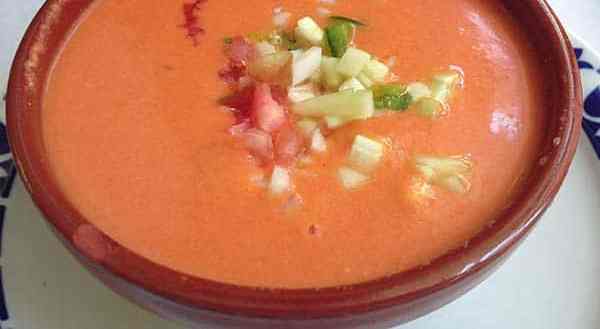 - Salmorejo cordobés: otra famosa sopa fría a base de tomate de origen andaluz. Esta incluye jamón entre sus ingredientes.