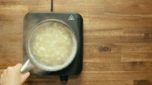 Pon en una olla las papas cortadas y el agua. Hierve de 15 a 20 minutos. Una vez estén blandas, escurre y reserva.