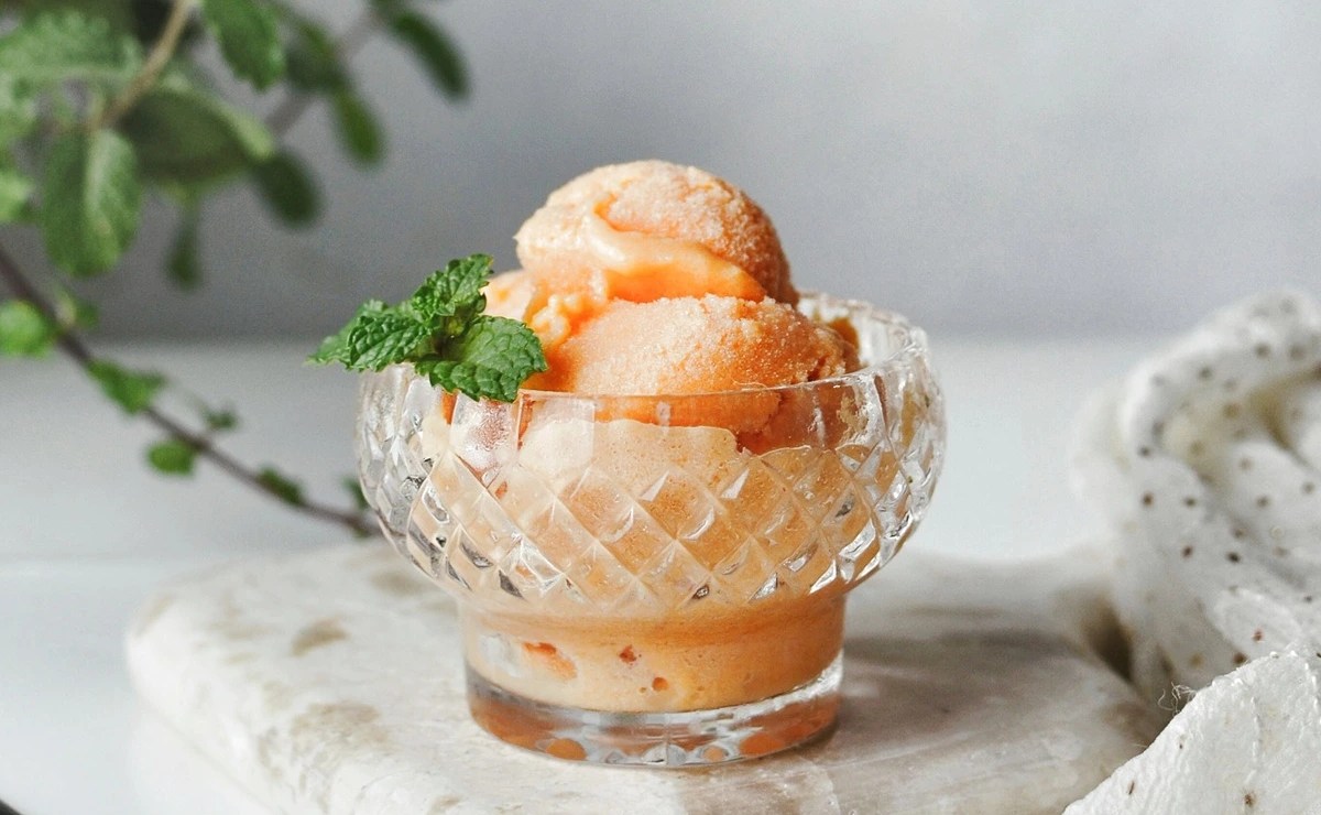 Si te gustan los postres pero no quieres preocuparte por las calorías, está es una excelente opción, con un sabor naturalmente dulce. A diferencia del helado tradicional, este sorbete no contiene lácteos.