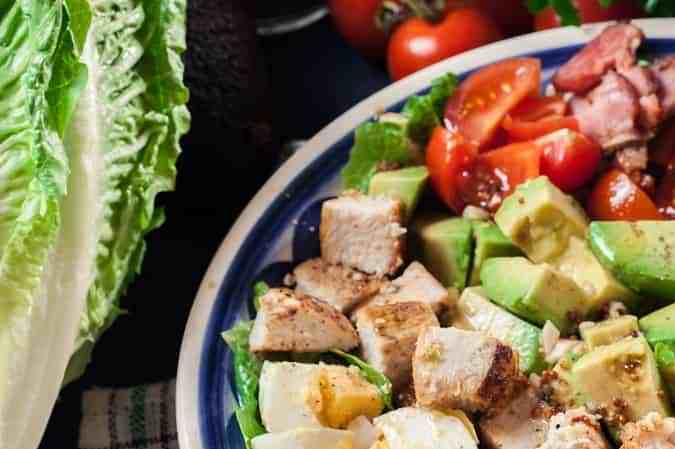 Es una comida americana que está hecha a base de lechuga, tomate, aguacate pechuga de pollo en tiras, huevo cocido, tocino crocante y queso roquefort. Es bañada en una vinagreta realizada con vinagre de vino tinto y mostaza Dijon que le da una toque excepcional. Es una comida muy completa, nutritiva y súper deliciosa.