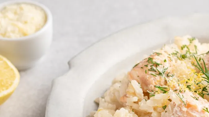 Almuerzo: Iniciemos la semana con un risotto de bacalao, una receta clásica italiana que se puede preparar en solo 40 minutos y es muy delicioso.