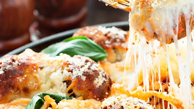 Almuerzo: Un almuerzo que nunca falla son las pastas, así que puedes preparar un delicioso gratinado de espaguetis con albóndigas.