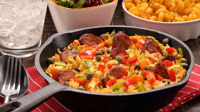 Este arroz se prepara solo en 40 minutos y se hace a base de tomate y chorizo, lo que le da ese color rojizo característico. Muy delicioso.