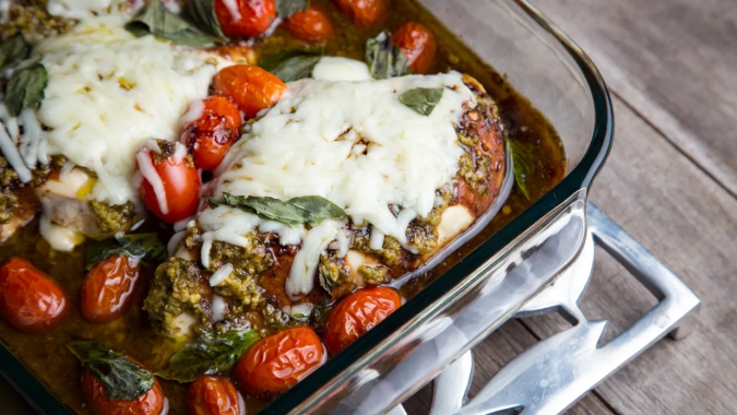 Almuerzo: Una receta deliciosa para mitad de semana es esta pechuga de pollo con pesto y mozzarella, una alternativa poco complicada y diferente. Queda jugosa y con muy pocos ingredientes.
