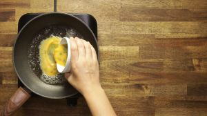 Vierte los huevos batidos y esparce muy bien.