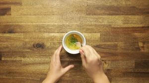 Coloca los huevos en un recipiente pequeño y sazona con sal y pimienta. Añade el cebollín troceado y mezcla muy bien.