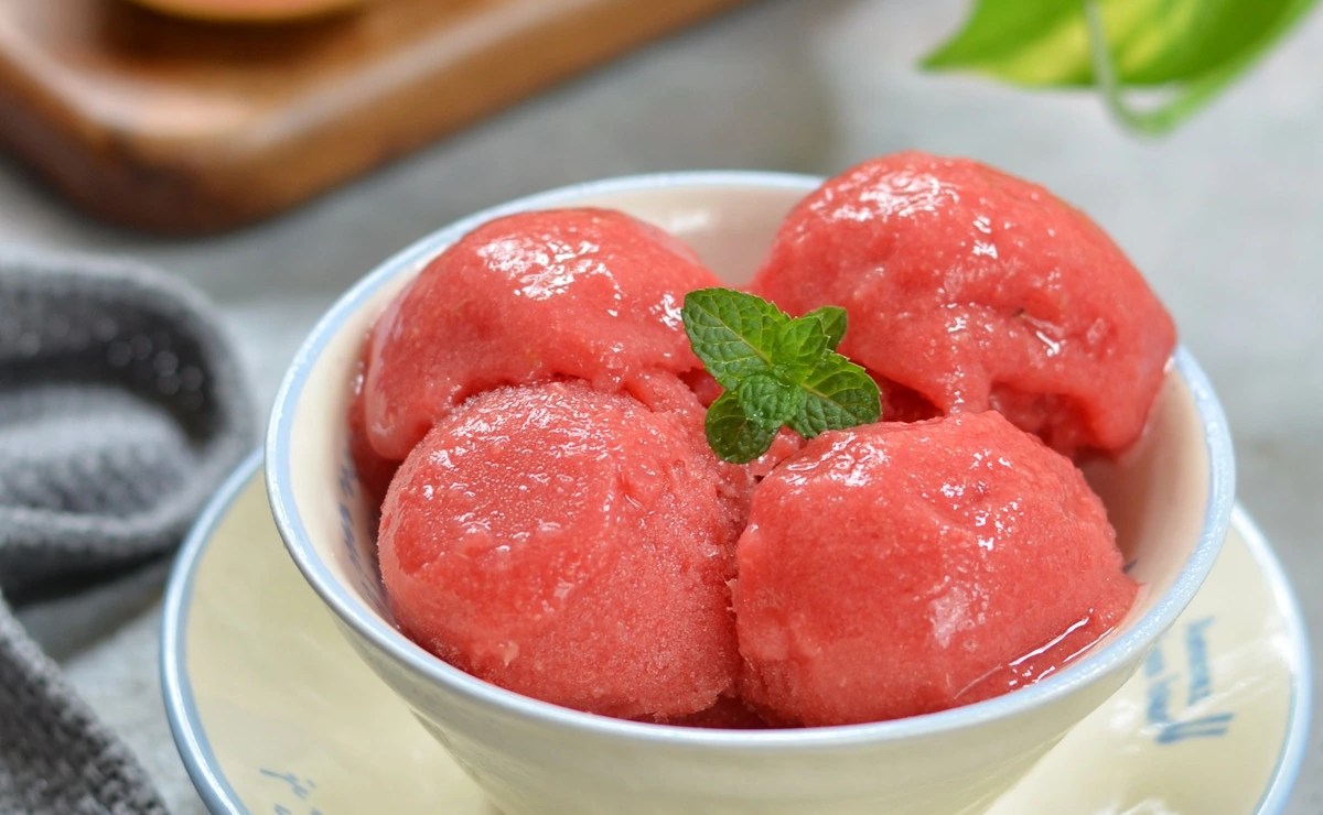 El sorbete de guayaba es un postre helado de textura suave y sabor intenso, perfecto para disfrutar de un verano fresco y lleno de sabor.