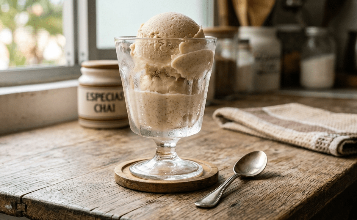 En esta receta convertiremos la intensidad aromática del tradicional té chai en un refrescante postre helado. Aunque el chai tiene raíces profundas en la India, este sorbete es una reinterpretación contemporánea para disfrutar en meriendas o postres elegantes.