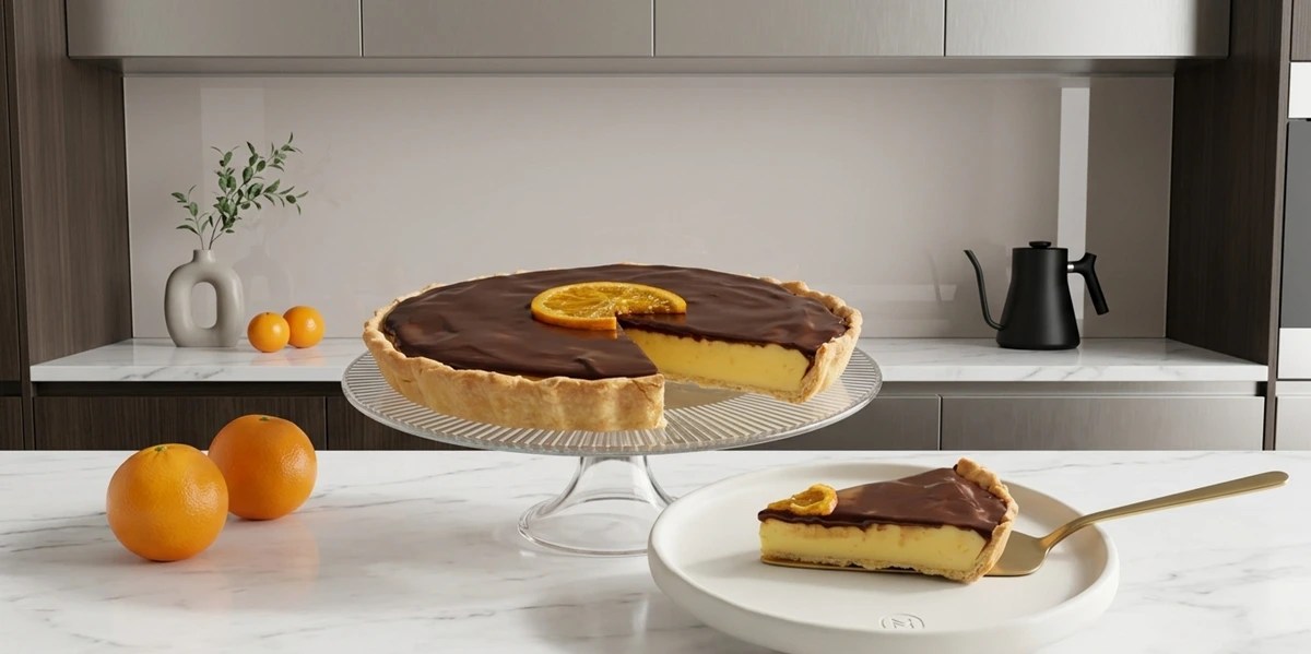 Aprende a preparar una tarta de crema de naranja y chocolate, un postre elegante, cremoso y con un sabor bien equilibrado, para servir en un momento especial.