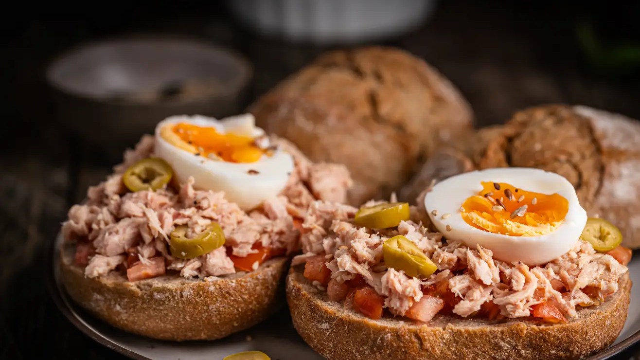 Haz una rica tostada de atún con huevo en pan integral