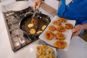 Una de las recetas favoritas de Jacqui —fácil, nutritiva y divertida para toda la familia— son los patacones (o tostones) con puré de frijoles negros sazonados, un platillo que siempre ha amado al visitar a su familia en Costa Rica. En su blog explica que los llama patacones, en honor a sus familiares costarricenses, mientras que su abuela puertorriqueña los llama tostones. Los sirve con un pico de gallo de mango, que agrega un contraste fresco y dulce.